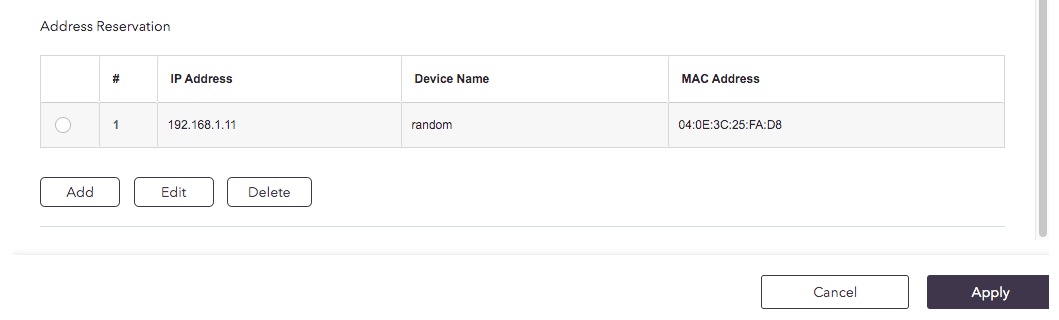 I scroll to the end of that list, click “Add”, then choose a device and type in the address I want that thing to have.