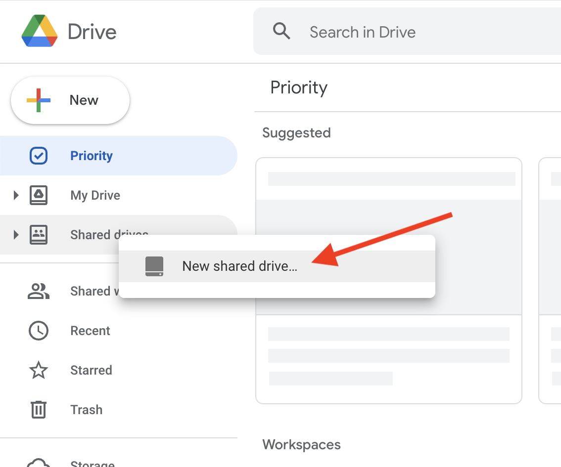 Right-click on "Shared Drives" and choose "New shared drive..."