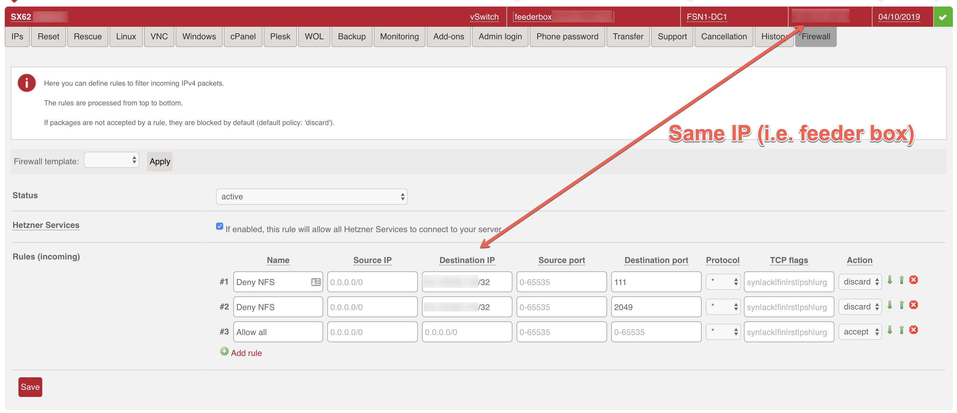 Log into Hetzner Robot.